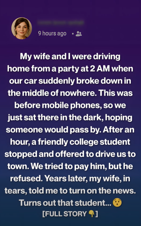 My wife and I stared at the screen in silence. We didn’t say it out loud, but we were thinking the same thing: the man who once saved us on a lonely road hadn’t just changed our night. He’d gone on to change the world.