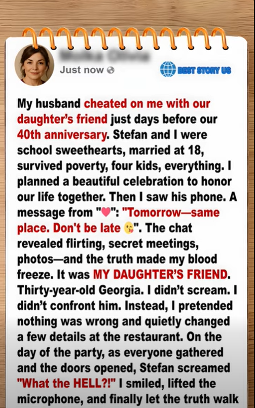 Days before our 40th anniversary celebration, I found flirty messages on my husband’s phone from my daughter’s best friend. What I felt went beyond heartbreak. Instead of confronting him, I planned something he’d never forget.