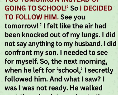 I OVERHEARD MY SON SAYING ON THE PHONE, ‘HI, MOM! I’LL VISIT YOU TOMORROW INSTEAD OF GOING TO SCHOOL!’ So I DECIDED TO FOLLOW HIM. See you tomorrow! ’ I felt like the air had been knocked out of my lungs. I did not say anything to my husband. I did not confront my son. I needed to see for myself. So, the next morning, when he left for ‘school,’ I secretly followed him. And what I saw? I was not ready. He walked past the school, turned onto the next street, and stopped in front of a house I did not recognize. Then, he knocked. A few seconds later … the door opened … in front of him stood a …..