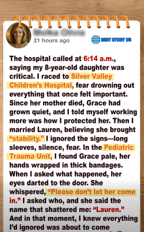 I did not notice when Grace stopped asking me to read to her at night, and I did not question why she flinched at sudden movements, because grief, I thought, explained everything, and the truth required a level of attention I was unwilling to give.