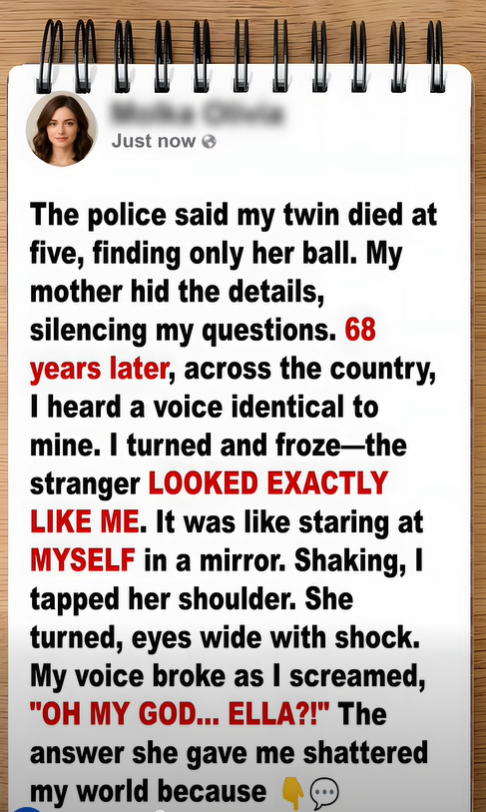 When I was five, my twin sister walked into the trees behind our house and never came back. The police told my parents her body was found, but I never saw a grave, never saw a coffin. Just decades of silence and a feeling that the story wasn’t really over.