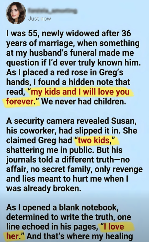 I was 55 years old, newly widowed after 36 years of marriage, when something I found at my husband’s funeral made me question whether I’d ever really known the man I loved.