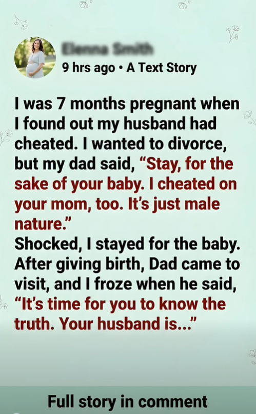 “I didn’t want you going through a divorce, court hearings, screaming matches — not while you were pregnant. Stress like that can harm both you and the baby. I was terrified something would happen. So I said what I had to say to keep you calm. To buy time.”