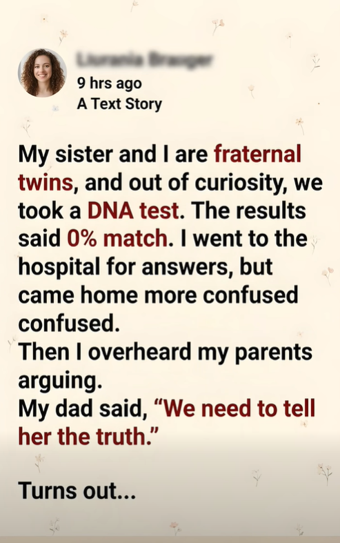 The next morning, driven by confusion and a rising panic I couldn’t name, I went straight to the hospital where we were born. I told myself there had to be an error. A switched sample.