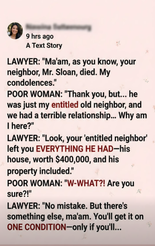 LAWYER: “He couldn’t save her, ma’am. So he spent the last ten years trying to save you. The condition wasn’t about the house. He just wanted to make sure you were safe under a roof for one more year.”