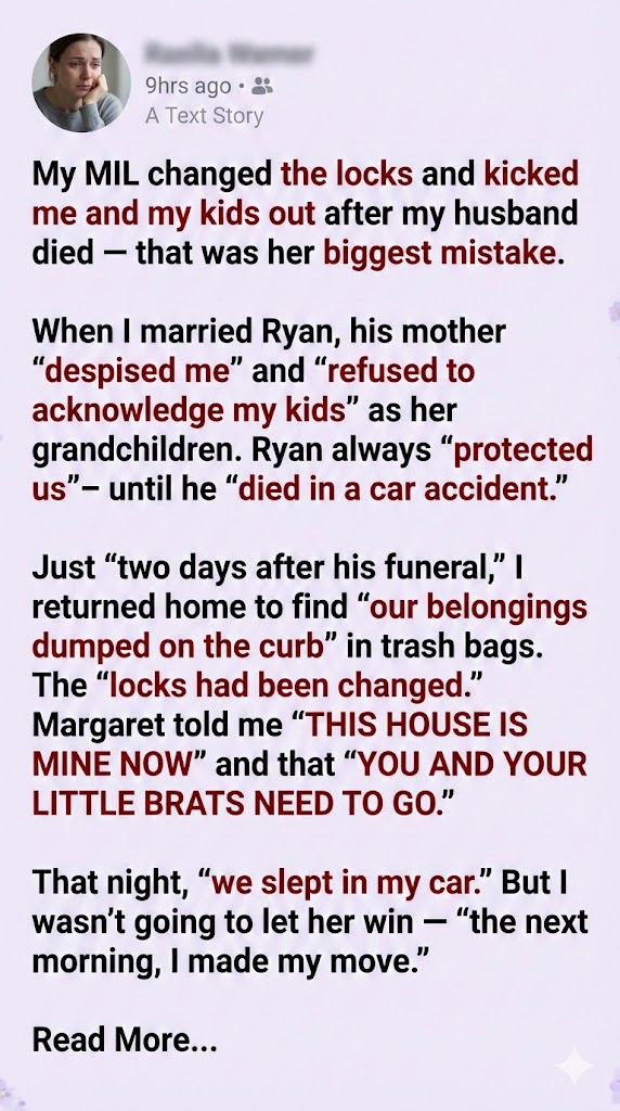 Losing my husband shattered me. But two days after his funeral, my mother-in-law made it worse. She kicked me and my kids out, changed the locks, and left us homeless. She thought she won, but she had no idea she was making the biggest mistake of her life.