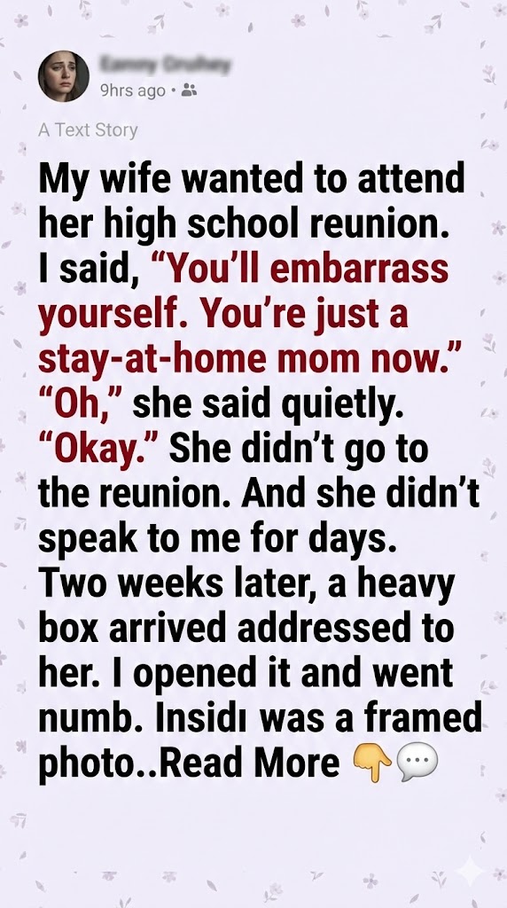 Not as a reminder of what she missed—but of what she is. And next time there’s a reunion, I won’t be the reason she stays home. I’ll be the one making sure she goes.