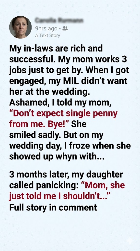 I remember standing there with the phone pressed to my ear, my stomach twisting. I didn’t defend my mom. I didn’t argue. I let the shame win.