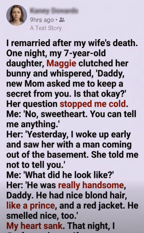 “Don’t lie to me,” I snapped. “Maggie saw a man coming up the stairs with you. Blond hair. Red jacket. She said he ‘smelled nice’.”