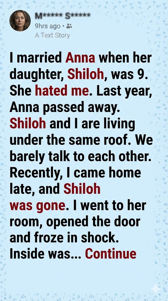 When my wife, Anna, and I got married, her daughter Shiloh was nine years old—a quiet, sharp-eyed kid who watched me like I was an intruder in her life. She hated me from day one. Nothing explosive, nothing dramatic… just a constant, icy wall. No matter what I did—driving her to school, helping with homework, giving her space—she rejected all of it.