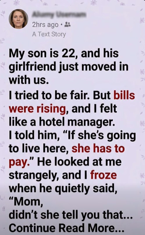 I’ve been raising my son alone since he was 5. He’s 22 now, and his girlfriend, Mia, started staying here full-time. At first, I tried to be fair. But bills were rising, and I felt like a hotel manager.