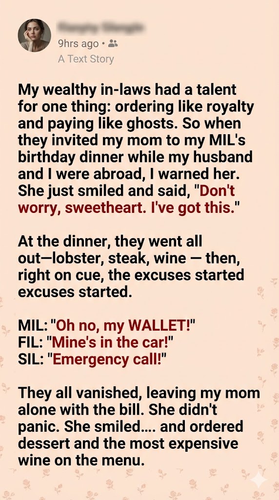 At another family dinner, she watched me eat in silence. When dessert arrived, she leaned in and said sweetly,