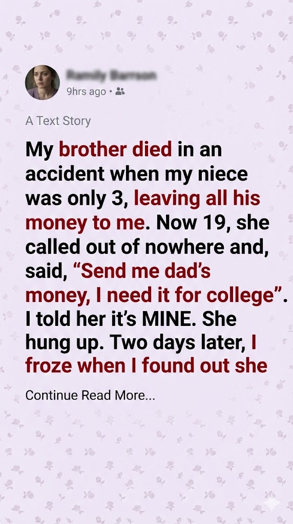 I never saw that money as mine alone, but I also never believed it was something my niece was automatically entitled to. Her father trusted me to decide wisely—not emotionally.