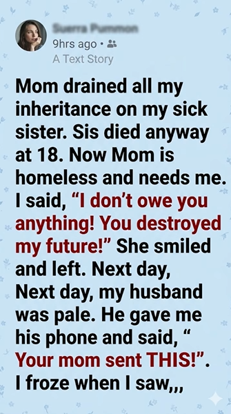 She told her mother she owed her nothing. That her future had been destroyed. Her mother only smiled, a sad, knowing smile, and walked away without another word.The next morning, Mara found her husband standing in the kitchen, pale as paper. He didn’t speak at first; he simply handed her his phone. On the screen was a message from an unknown number, sent late in the night.