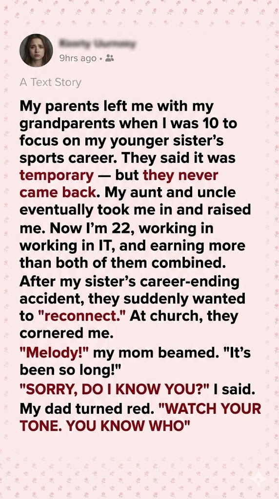 They looked… different. Older, thinner, lines of exhaustion etched around their eyes. They spoke in hushed tones, full of apologies and regret, recounting a tale of overwhelming debt, demanding ballet academies, and the crushing pressure to support my sister’s once-in-a-lifetime talent. They painted a picture of desperate parents, pushed to the brink, making an impossible choice. “It broke our hearts,” my father said, his voice cracking. “But we had no other way to give her the life she deserved.”