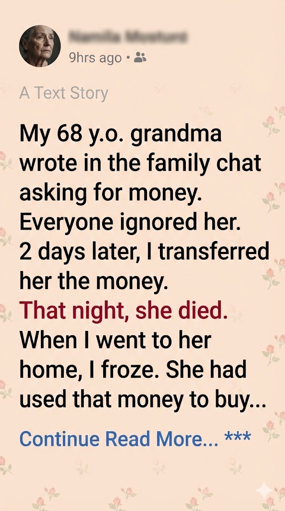 Something kept bothering me. My grandma wasn’t the type to ask for money unless she really needed it. She was proud. Stubborn. The kind of woman who reused tea bags and folded plastic bags neatly in a drawer.