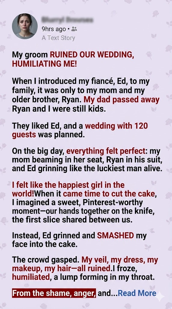 The shame was overwhelming. This was supposed to be our moment, our perfect day, and Ed had turned it into a joke.