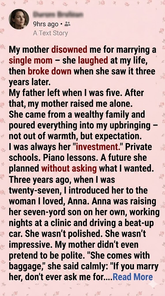 When Jonathan chooses love over legacy, his mother walks away without looking back. Three years later, she returns, with judgment in her eyes and no apology on her lips. But what she finds behind his front door isn’t what she expected…