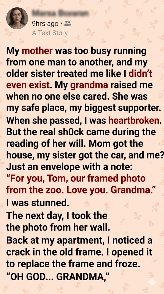 Inside was a single framed photo: Grandma and me at the zoo when I was six.