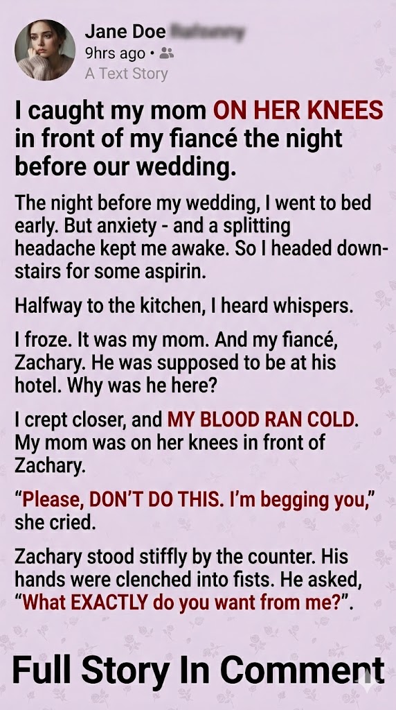 My mom scrambled to her feet, wiping her face, trying to smile like she wasn’t just begging on the floor.