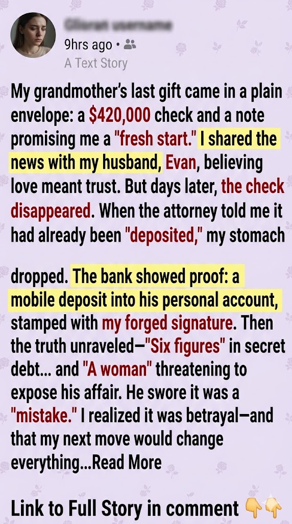 No glitter. No flowers. Just a heavy, official-looking check and a short letter from the estate attorney that said, Your grandmother wanted you to have a fresh start.