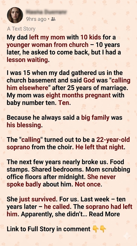 My Dad Left My Mom With 10 Kids for a Younger Woman From Church – 10 Years Later, He Called Mom Asking to Be a Family Again, but I Taught Him a Lesson