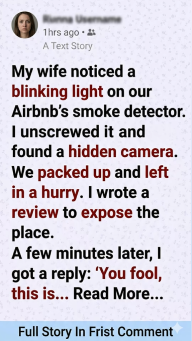 That night, lying awake beside his wife, a chilling realization settled in: safety is fragile. Cozy listing photos, glowing reviews, and the familiarity of home can all mask hidden dangers. And sometimes, that blinking light isn’t a warning—it’s a silent observer.