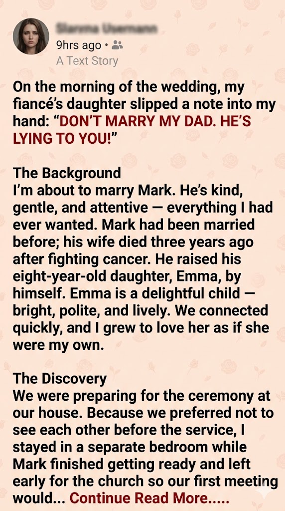On the morning of the wedding, my fiancé’s daughter slipped a note into my hand: