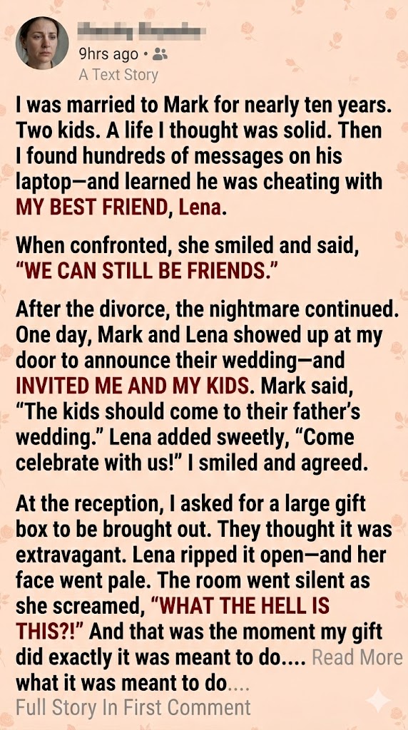 When Sarah is invited to the wedding of her ex-husband and ex-best friend, she chooses grace over chaos, or so it seems. In a story about betrayal, resilience, and the power of quiet truth, one woman brings a gift that no one saw coming… and no one will ever forget.