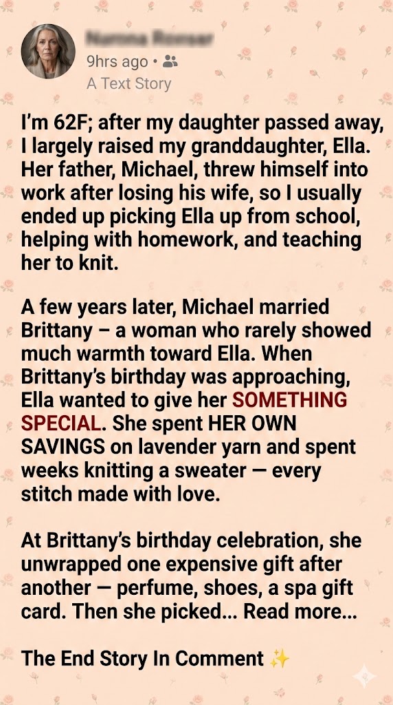 Her father, Michael, was drowning in grief in his own way. He threw himself into work, staying late at the office, picking up extra projects, volunteering for travel. I understood. Grief looks different on everyone. But it meant that most days, I was the one picking Ella up from school, braiding her hair before class, helping with math homework at the kitchen table, and teaching her to knit on quiet evenings when missing her mom felt the loudest.