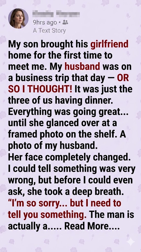 Laura thought meeting her son’s girlfriend would be a joyful milestone. Instead, one family photo exposed a devastating secret: Sophie recognized the man in the frame. He wasn’t just Ryan’s father—he was living a double life. What followed was a night of betrayal, confrontation, and the collapse of a twenty-year marriage.