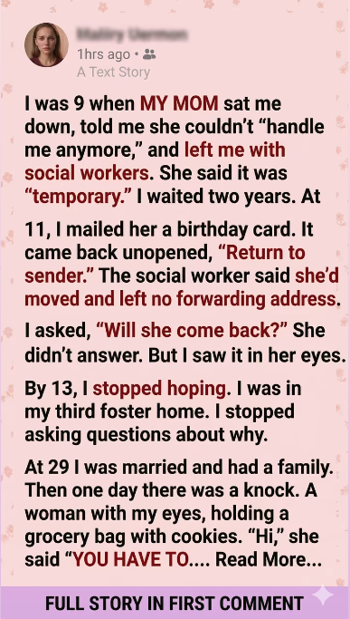 For two years, I clung to that word. At 11, I mailed Mom a birthday card. Two weeks later, it came back stamped Return to Sender.