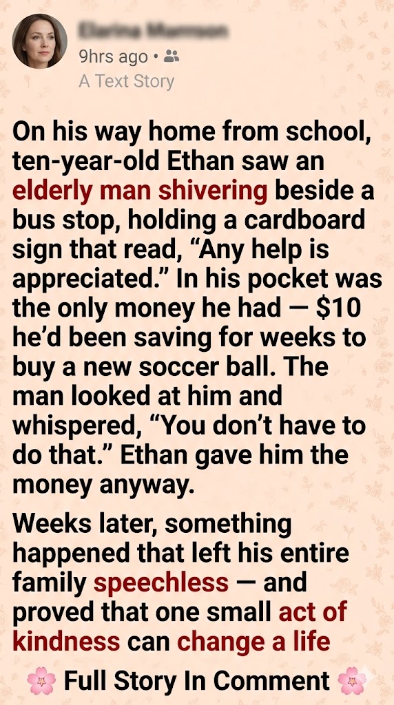 “Your son gave me ten dollars when I had nothing,” he said. “Not just no money — nothing. I had just lost my wife. Medical bills had drained everything. I was waiting for a veterans’ housing placement. That ten dollars wasn’t just money. It was… dignity.”
