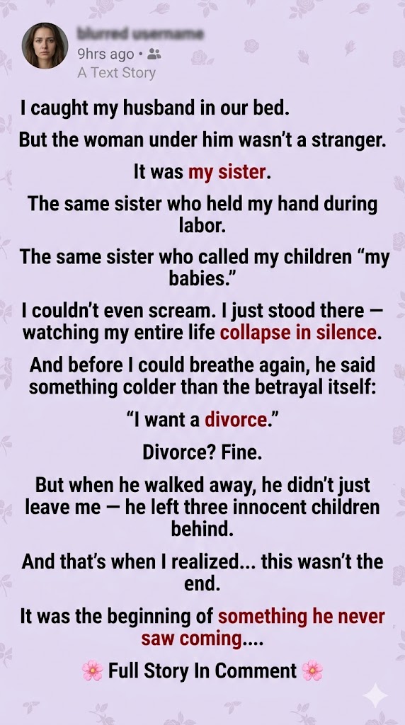 For a few seconds, no one moved. The air felt thick, like I had stepped into someone else’s nightmare. My sister grabbed the blanket. My husband just stared at me — not ashamed, not afraid. Just… exposed.