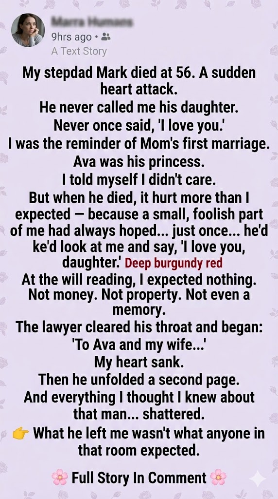 We sat in his lawyer’s office: Mom, Ava, a few relatives. The lawyer opened the envelope.