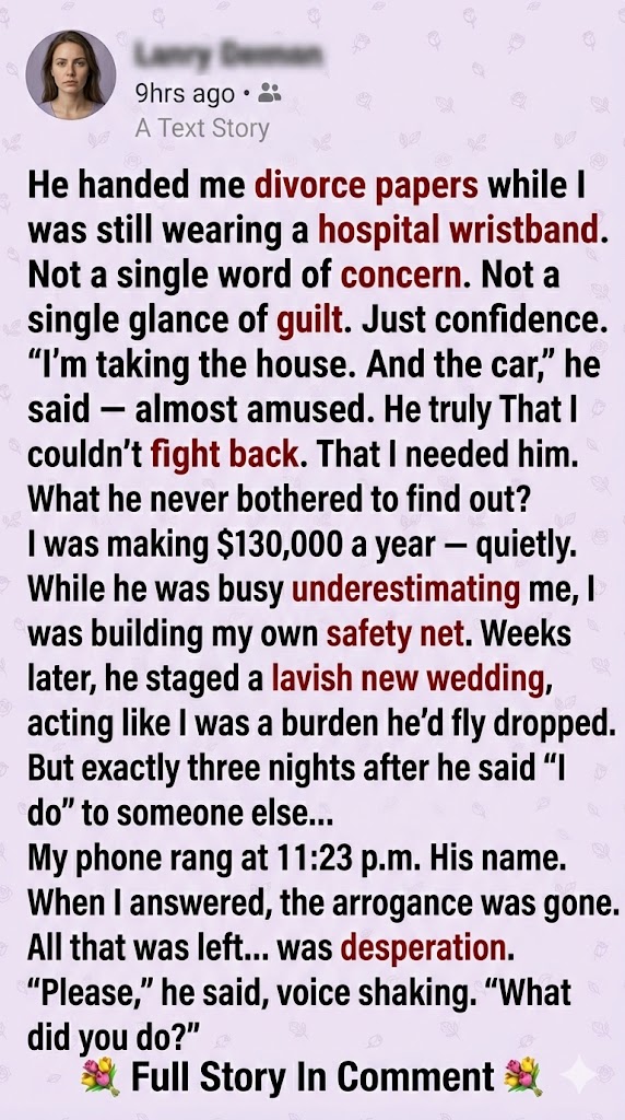 My husband handed me divorce papers while I was still in a hospital bed.