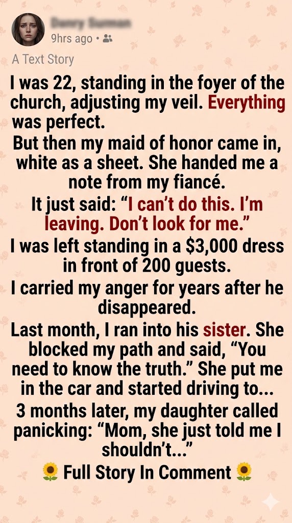 I remember the silence first. Then the noise. The whispers spreading like wildfire through the church. My mother collapsing into a chair. My father demanding answers no one had.