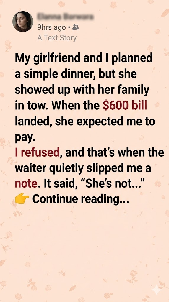 She Invited Her Entire Family to Our “Simple Dinner” — Then Expected Me to Pay $600 While Hiding a Secret Life