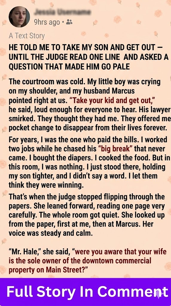 The courtroom was cold. My little boy, Thomas, was crying on my shoulder, and my husband Marcus pointed right at us. “Take your kid and get out,” he said, loud enough for the everyone to hear. His lawyer smirked. They thought they had me. They offered me the pocket change to disappear from their lives forever.