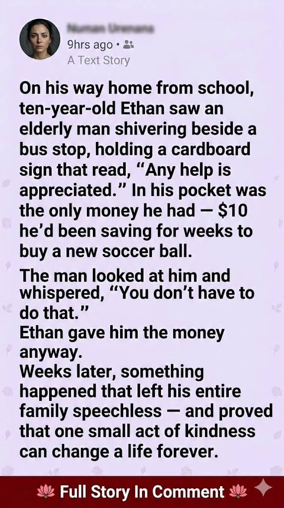 “Your son gave me ten dollars when I had nothing,” he said. “Not just no money — nothing. I had just lost my wife. Medical bills had drained everything. I was waiting for a veterans’ housing placement. That ten dollars wasn’t just money. It was… dignity.”