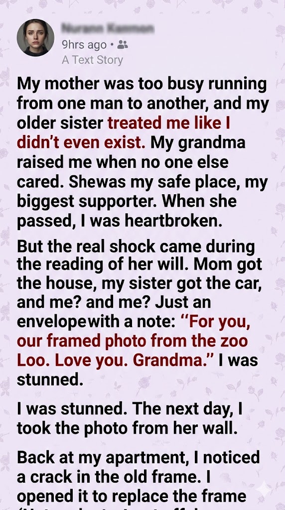 Inside was a single framed photo: Grandma and me at the zoo when I was six.