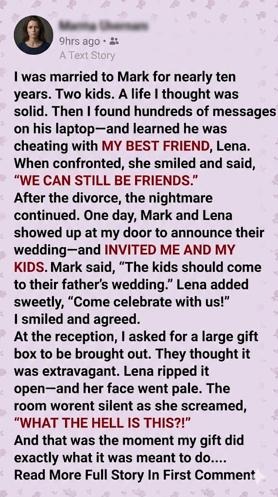 When Sarah is invited to the wedding of her ex-husband and ex-best friend, she chooses grace over chaos, or so it seems. In a story about betrayal, resilience, and the power of quiet truth, one woman brings a gift that no one saw coming… and no one will ever forget.