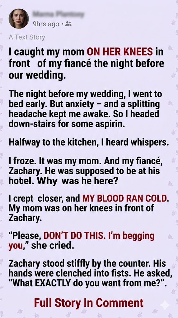 My mom scrambled to her feet, wiping her face, trying to smile like she wasn’t just begging on the floor.