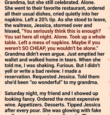 Throughout the meal, he had been quietly observing, sipping his expensive wine, and taking notes on his phone. What Jessica didn’t know—and what I had spent two days orchestrating—was that my friend wasn’t just a plus-one. His name was David, and he was the regional director of the restaurant group that owned this establishment. I had reached out to him on LinkedIn, shared my grandmother’s story, and he was so appalled that he insisted on joining me undercover.