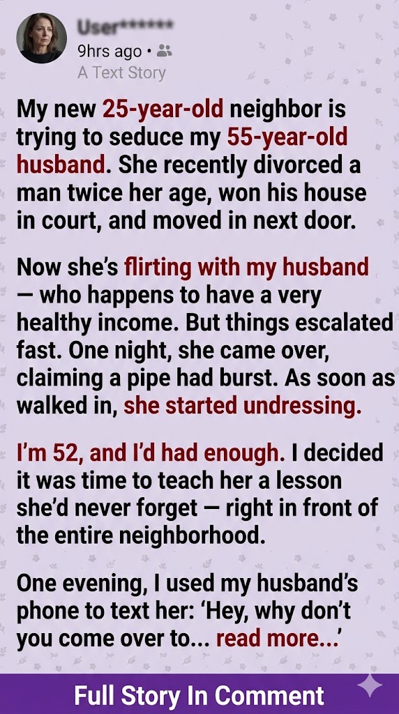 The aftermath was swift. She couldn’t walk to her mailbox without the neighbors snickering. Mrs. Higgins made sure the story reached three towns over by the next morning. A “For Sale” sign went up in Tiffany’s yard less than a week later. She moved out in the middle of the night, and my husband and I have enjoyed our peace and quiet ever since.