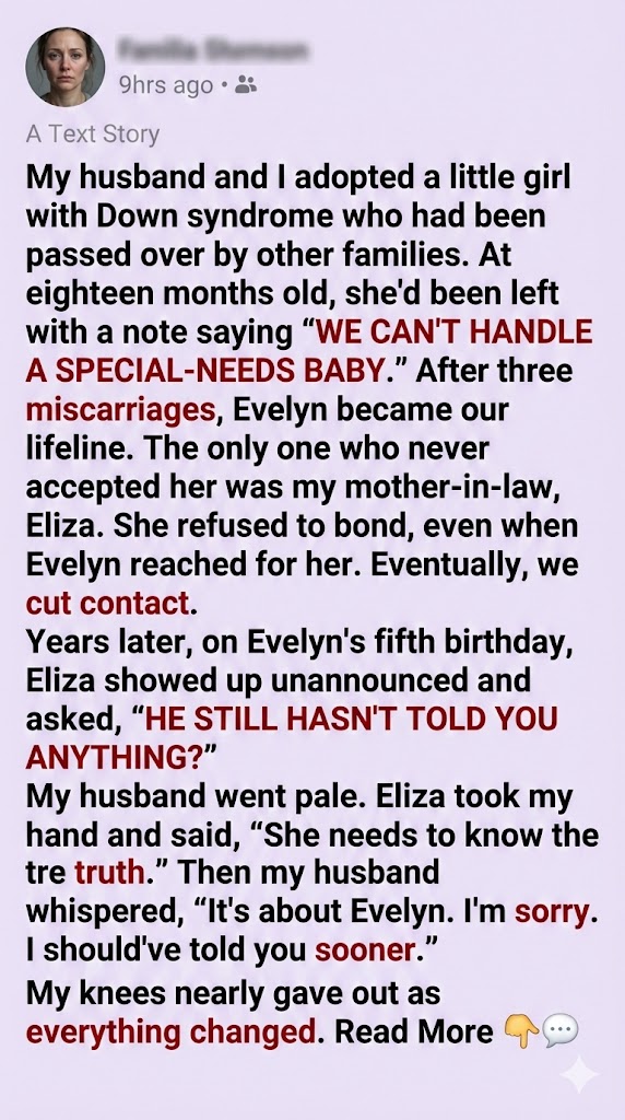 “I’ll tell Evelyn when she’s ready,” he promised. “But she may never be… ready. We’ll tell her the truth in a way she can understand.”