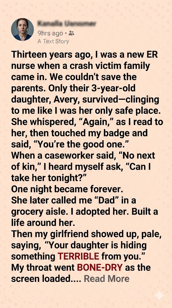 Thirteen years ago, I became a father to a little girl who lost everything in one terrible night. I built my life around her and loved her like my own blood. Then my girlfriend showed me something that shook me, and I had to choose between the woman I planned to marry and the daughter I’d raised.