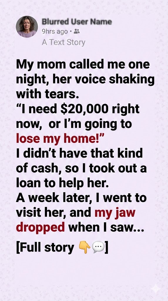 When I transferred the money, she cried again—this time thanking me. She promised she’d explain everything soon. I didn’t press her. I figured it was some emergency mortgage issue or medical bill she was embarrassed about.