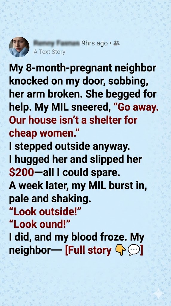 I watched my neighbor’s face crumple completely, humiliation mixing with pain and fear. She lowered her head, already turning as if she’d expected nothing else.
