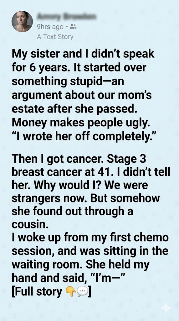 Later I learned she hadn’t slept at all. A cousin had mentioned my diagnosis in passing. My sister didn’t call. She didn’t text. She got in her car and drove through the night.
